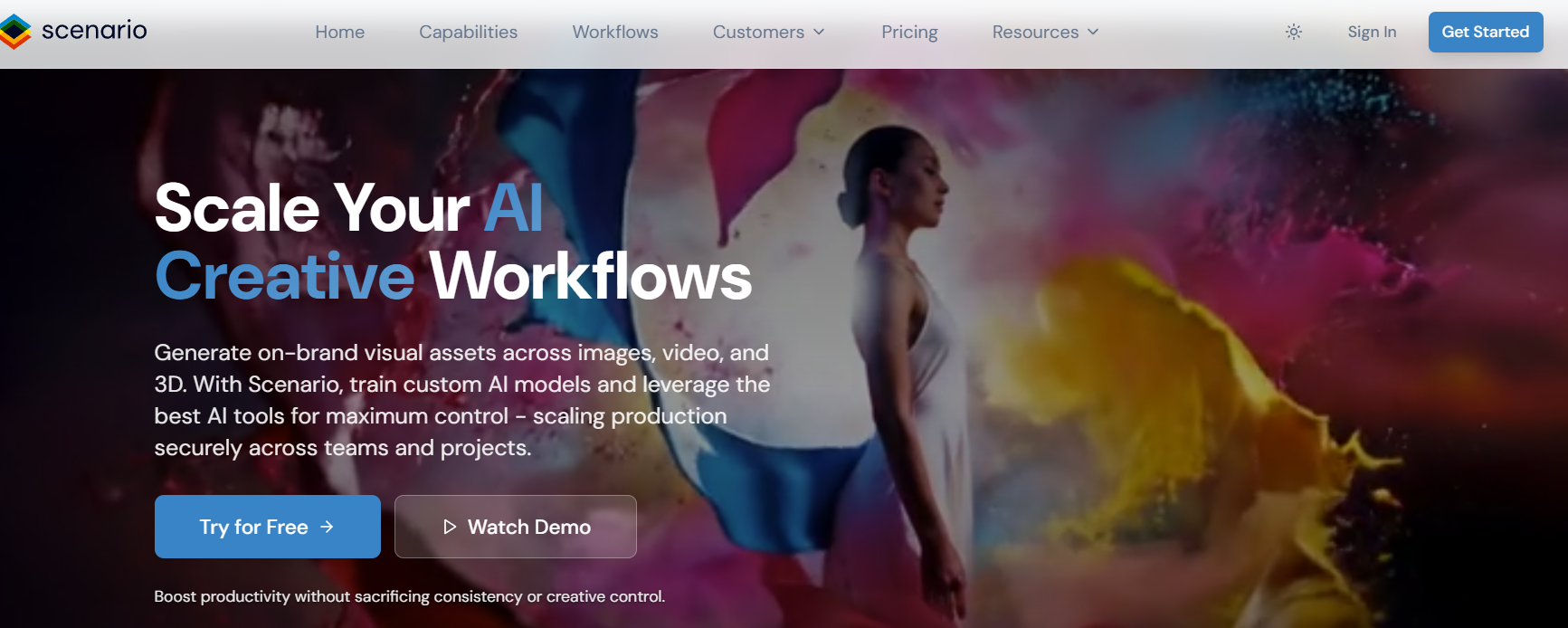 Scenario AI helps game developers create custom assets with trained models, fast generation, and scalable workflows.