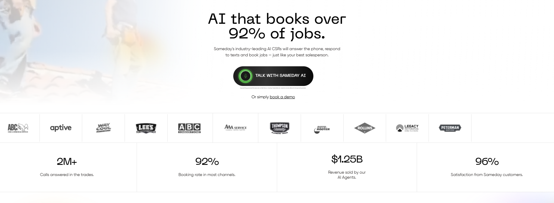 Sameday AI to system odbierania połączeń telefonicznych oparty na sztucznej inteligencji, stworzony dla firm usługowych. Pomaga pozyskiwać potencjalnych klientów i automatycznie rezerwować zlecenia. Każde połączenie przychodzące jest odbierane natychmiast, nawet poza godzinami pracy. Dzięki temu potencjalni klienci nigdy nie dodzwonią się na pocztę głosową.