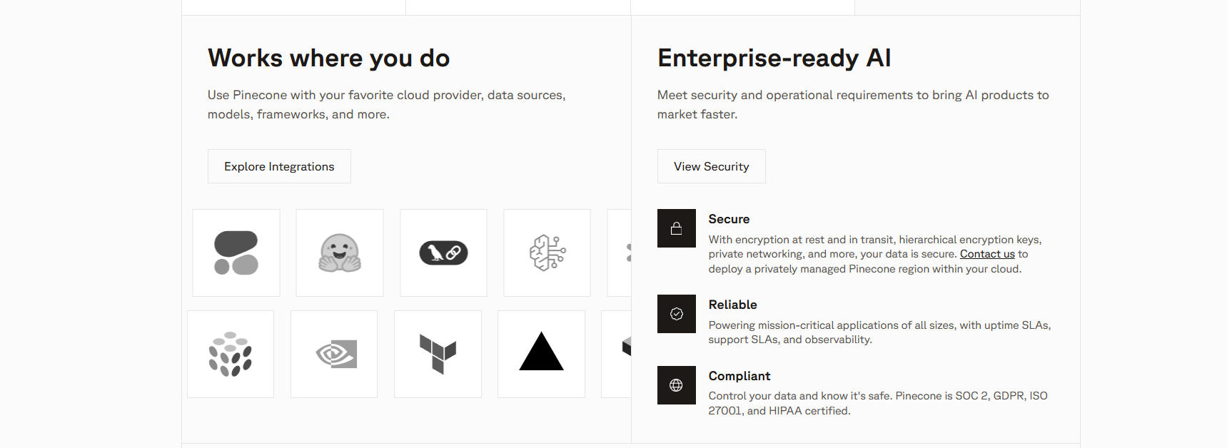 Pinecone เป็นซอฟต์แวร์ที่ใช้งานได้เฉพาะบนระบบคลาวด์ ซึ่งอาจไม่เหมาะกับองค์กรที่มีนโยบายด้านข้อมูลที่เข้มงวด